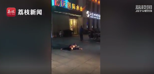 目击者拍摄的现场视频中,一名女子躺在地上,身边一名男子拿着尖刀,不停地叫嚣:“坐牢就坐牢,无所谓的。”